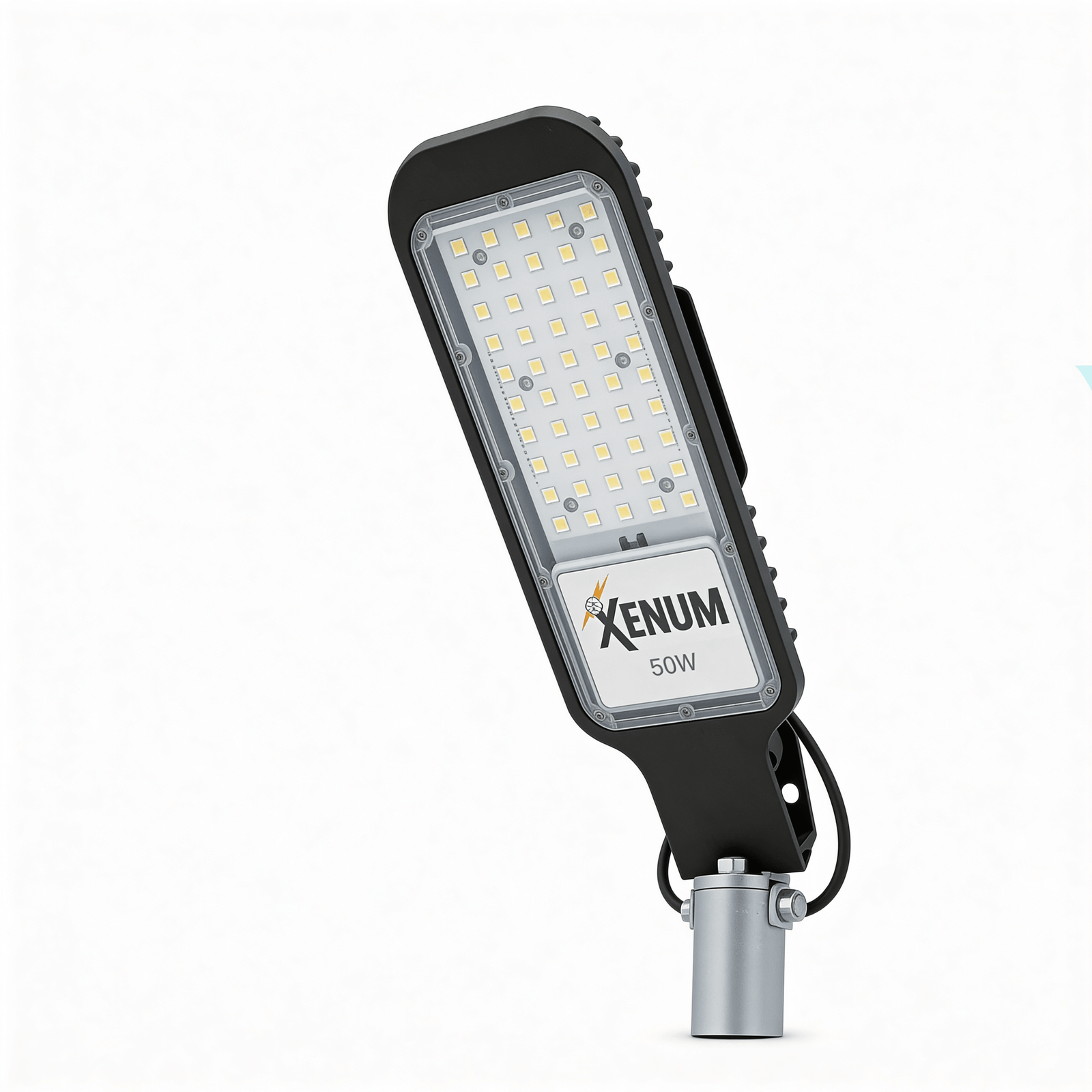 The Xenum 50W LED Street Light is a powerful and energy-efficient outdoor lighting solution designed for streets, roads, parking areas, campuses, and industrial spaces. Built with a durable body and advanced LED technology, it delivers bright, wide-area illumination while reducing power consumption.